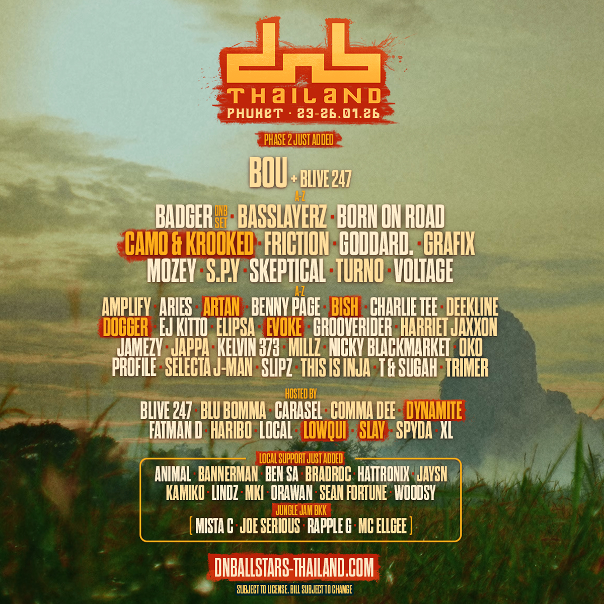 January 25th, 2026 DnB Allstars Thailand 2026 is a three day drum and bass festival in Chalong, Phuket, Thailand from Friday 23 January to Sunday 25 January 2026.