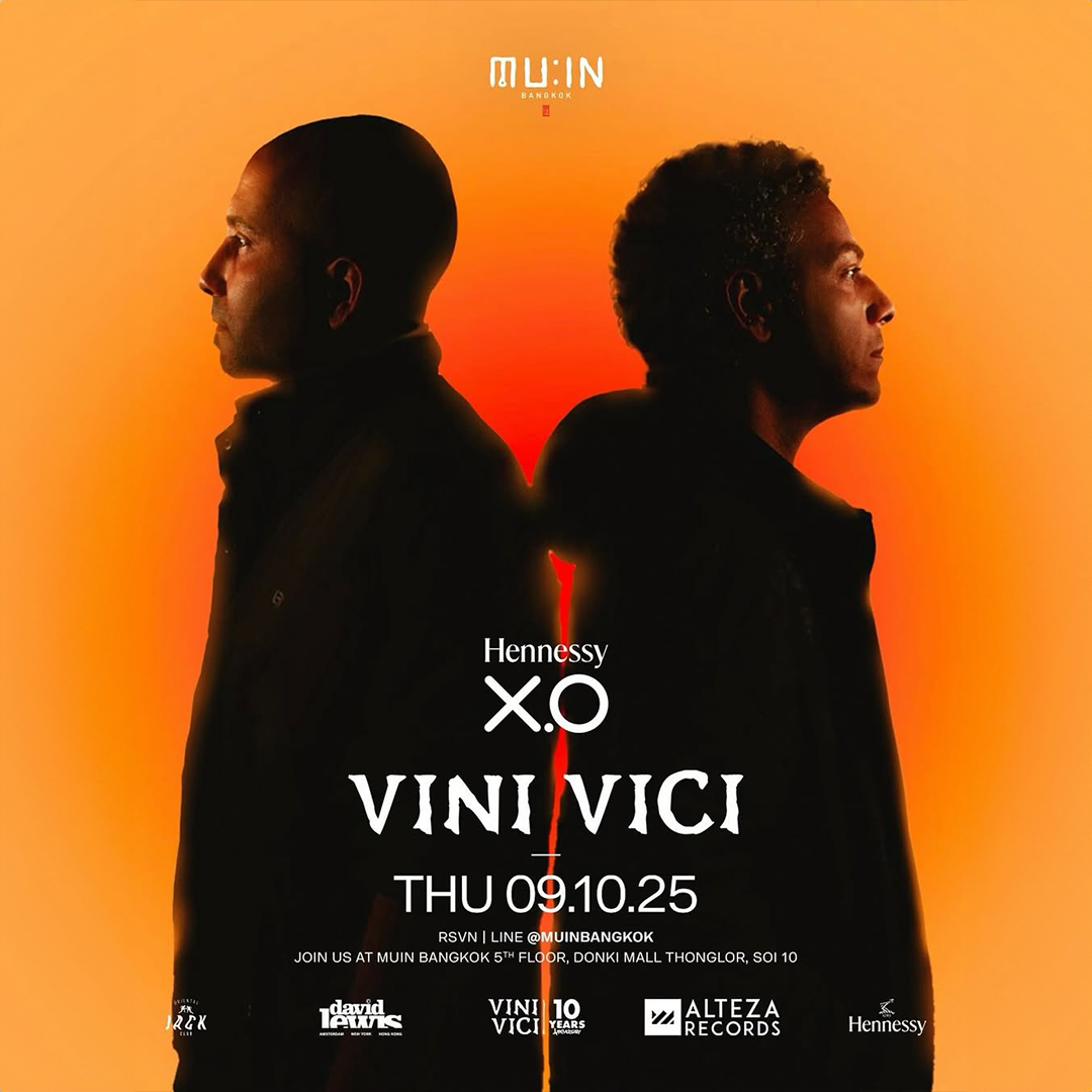 October 10th, 2025 On Thursday, October 9, Vini Vici returns to Bangkok for a night at MU:IN. Ranked number 32 on the DJ Mag Top 100, the Israeli duo has performed at major festivals including Tomorrowland and EDC. With millions of streams worldwide, their sound has helped bring psytrance to a global audience.