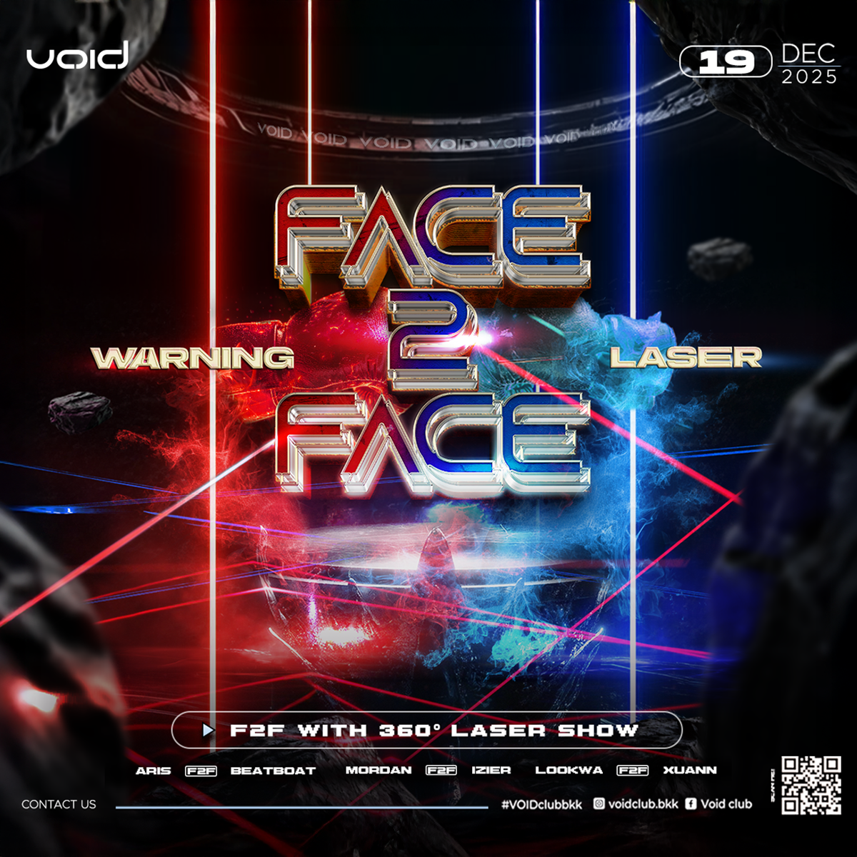 December 20th, 2025 VOID introduces a combined concept for the first time as FACE 2 FACE joins with WARNING LASER for a full-scale club production. The F2F battle format returns with an upgraded 360-degree Laser Cage system that surrounds the stage with coordinated light beams.