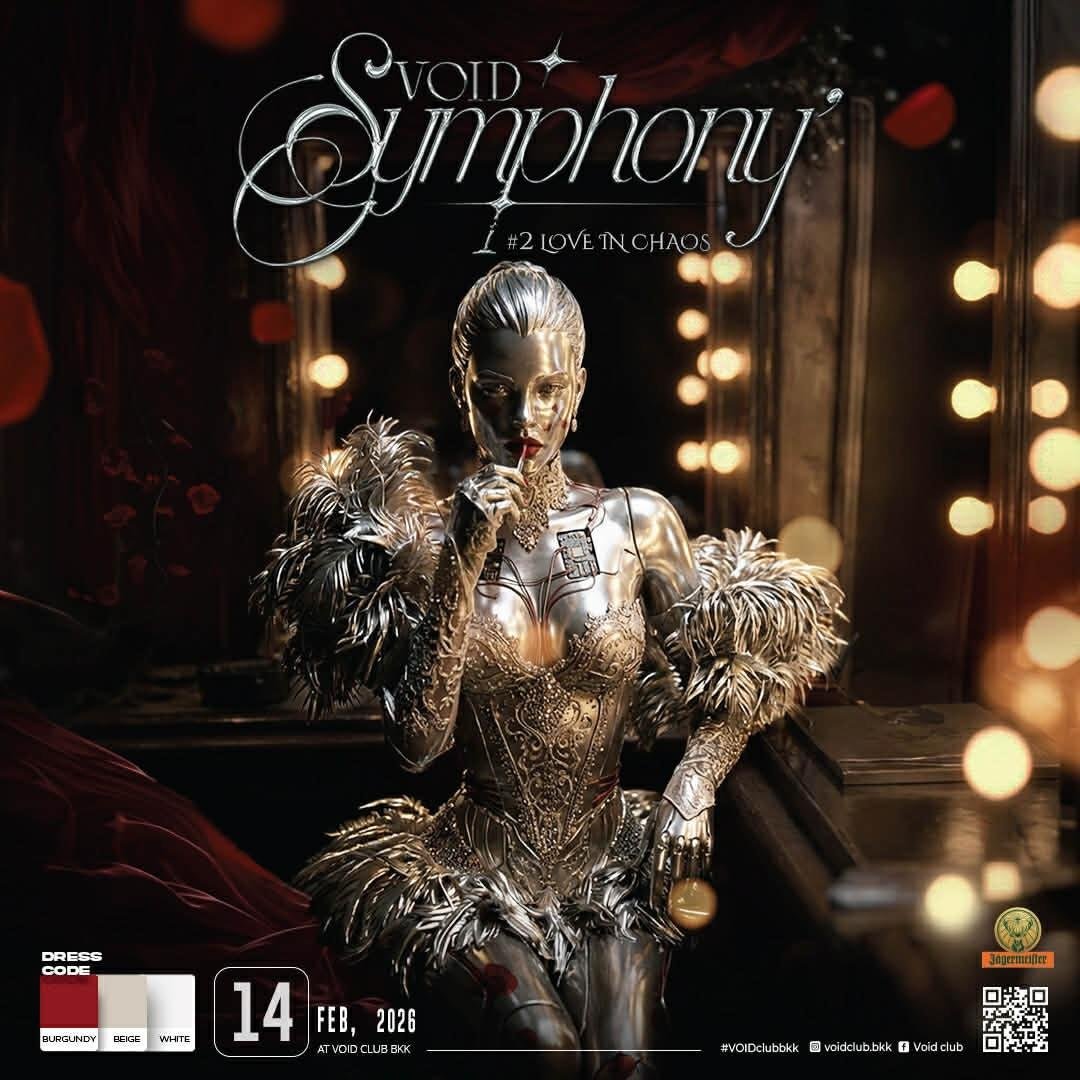 This Valentine’s Day, VOID Club Bangkok presents VOID Symphony: Love in Chaos, a one-night concept that combines a DJ set with live classical instruments inside the club. The performance brings electronic music together with orchestral elements, with musicians playing alongside the DJ throughout the night to create a more emotional and dramatic experience on the dancefloor. If you plan to attend, keep in mind the dress code featuring colours such as burgundy, white, and beige. For anyone looking to spend Valentine’s Day at a club night that mixes live performance with electronic music, this event offers a different way to experience the night.
